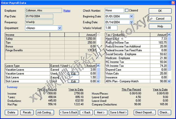作帳簡單到可以在家中就可以處理了。它的擴展和附加的功能使 PenSoft Payroll net