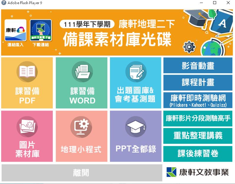 111學年下學期 國中 康軒版 地理備課資料庫 2年級(含課本、卷類資源、備課用書、習作含解答、教學輔助資源)教學光碟