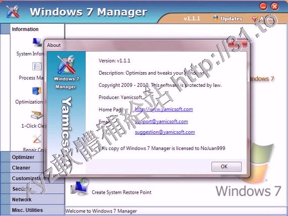 • Yamicsoft Windows 7 Manager v3.0.6 英文正式版(Widnows7 總管是優化和設置軟體)