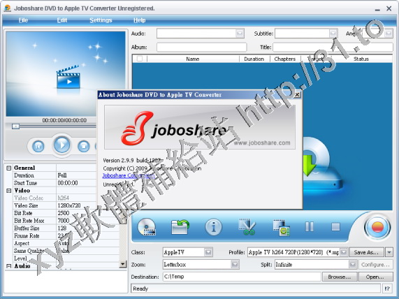 • Joboshare DVD to Apple TV Converter v2.9.9.1227 英文正式版(音視頻轉換軟體)