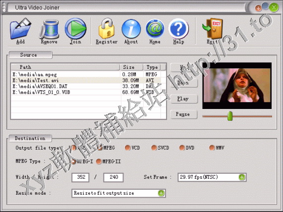 Ultra Video Joiner是一個幫助你連接或者合併AVI/DivX,MPEGI/II,VOB,DAT,WMV,ASF視